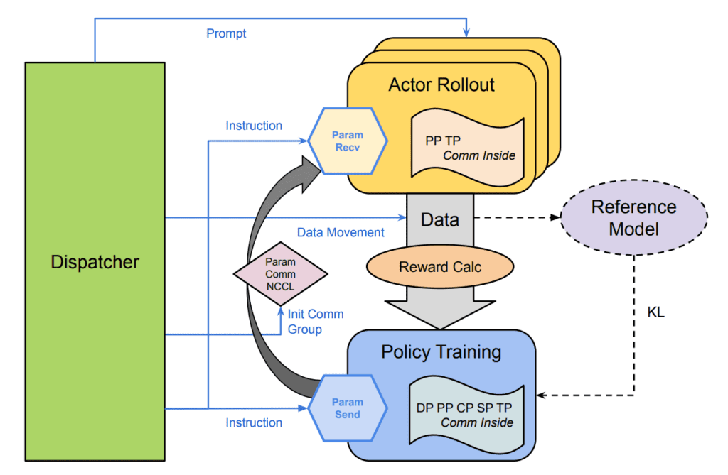 The authors used an efficient algorithm GRPO (Generalized Reward Policy Optimization) similarly to the one used in Deepseek R1. This algorithm doesn’t require training a separate critic model and the framework is fully asynchronous.