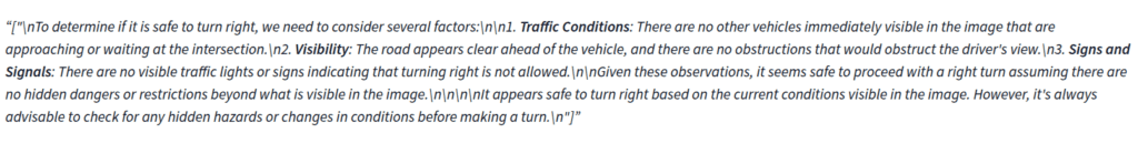 - After RL: The model is tuned to correctly identify the constraints and suggest “None of provided options” to abide by road rules and ensure safety. This is the interesting part, rather than simply choosing from the given options or guessing a likely one, the model actually reasons through the given environment and intelligently decides to take the appropriate next action.